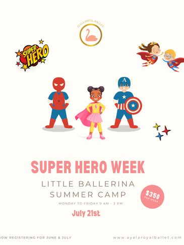 Each all week is themed by the best Disney Movies, Princess Characters and Super Heroes, a regular day at little ballerina summer camp would look like this;