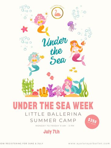 Dive into UNDER THE SEA WEEK! 🌊 Flip your fins and make waves with ballet, hip hop, acrobatics, musical theatre, jazz, and more! This splash-tastic camp will have you dancing like a true sea star! 🐠