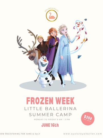 Let it go and DANCE! ❄️💙 Join us for FROZEN WEEK, where we twirl through snowflakes and shine on stage with ballet, hip hop, acrobatics, musical theatre, jazz, and more! The coolest week of summer is here! ☃️✨